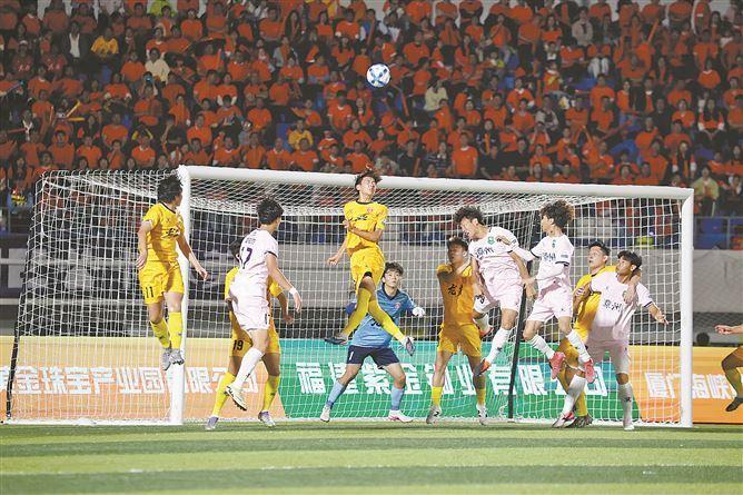 厦门、福州和泉州三队被视作闽超的夺冠热门。昨晚,泉州队客场1比0小胜莆田,这场球赢得比较艰难。第20分钟,泉州队蔡金城远射破门。下半场,莆田队获得点球,可惜将球踢飞,错失绝佳扳平机会。此役,莆田队门将朱羿郎表现神勇,数次扑出泉州队有威胁的射门。